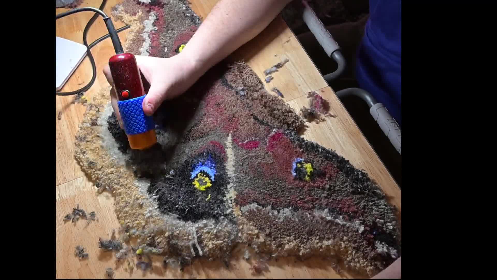 Take a look at the beginning of the rug shaving process. This first pass with the shaver reveals the detail in the precise color placement for the first time. Such a satisfying step in the process of hand making rugs!